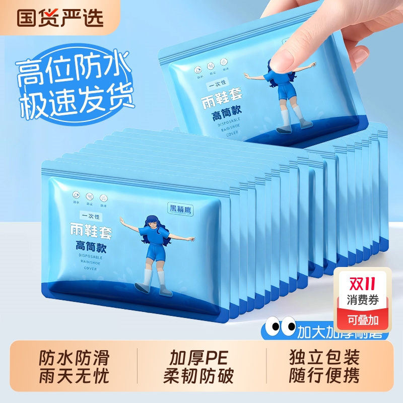 一次性鞋套防水防滑加厚耐磨下雨天户外徒步便携塑料高筒外穿雨鞋