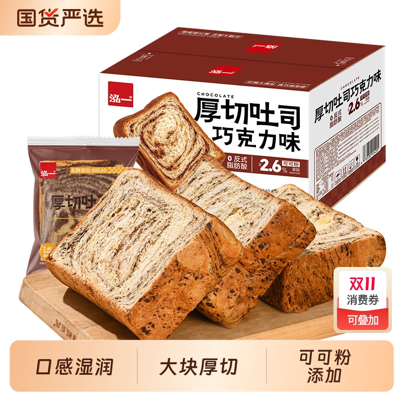 泓一巧克力厚切吐司面包整箱学生早餐速食代餐饱腹充饥休闲食品