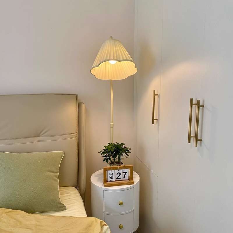 奶油风沙发旁边的落地灯客厅边几置物茶几卧室床头百褶立式台灯