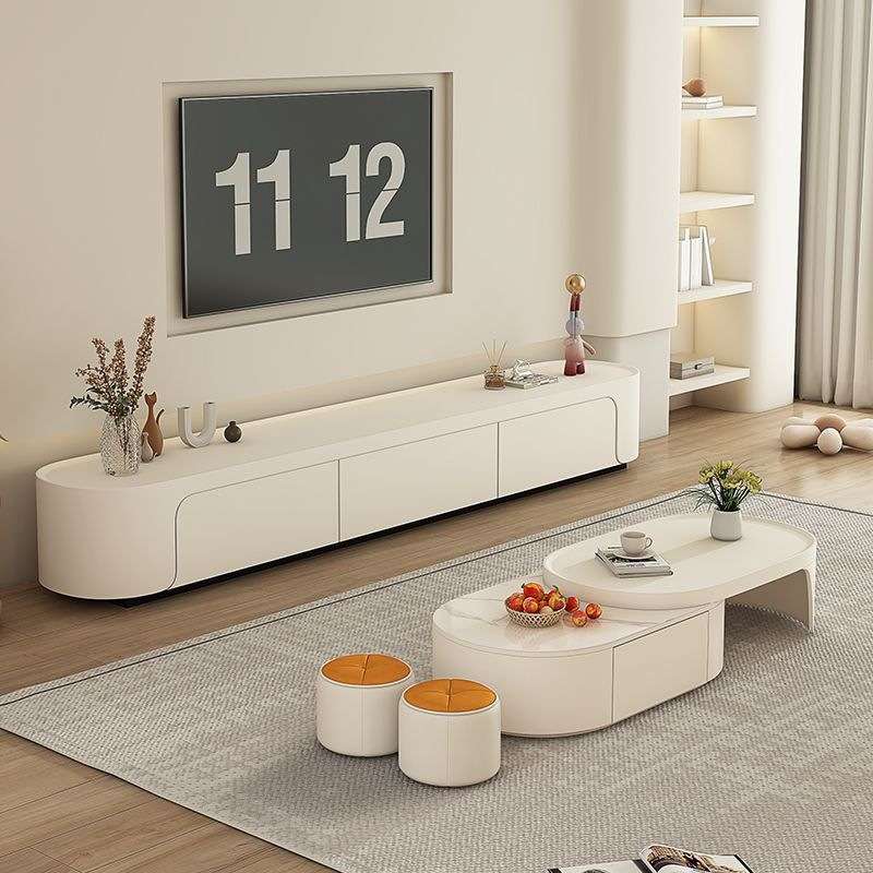 圆角法式奶油风白电视柜简约现代茶几组合客厅家用小户型极简家具