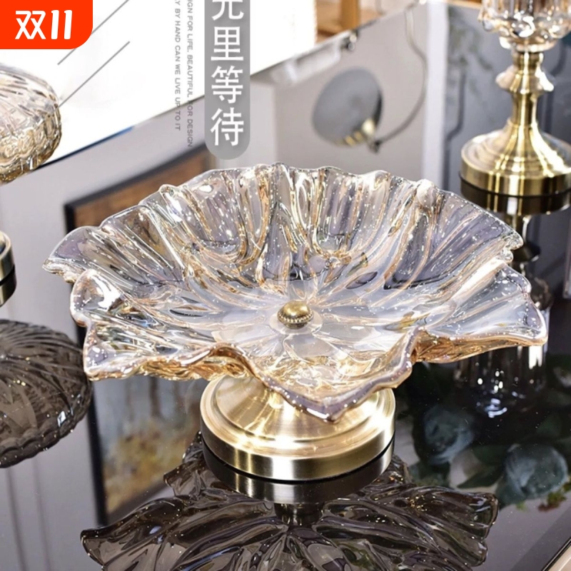 轻奢风水晶玻璃水果盘茶几摆件客厅奢华高档欧式美式高档果盘