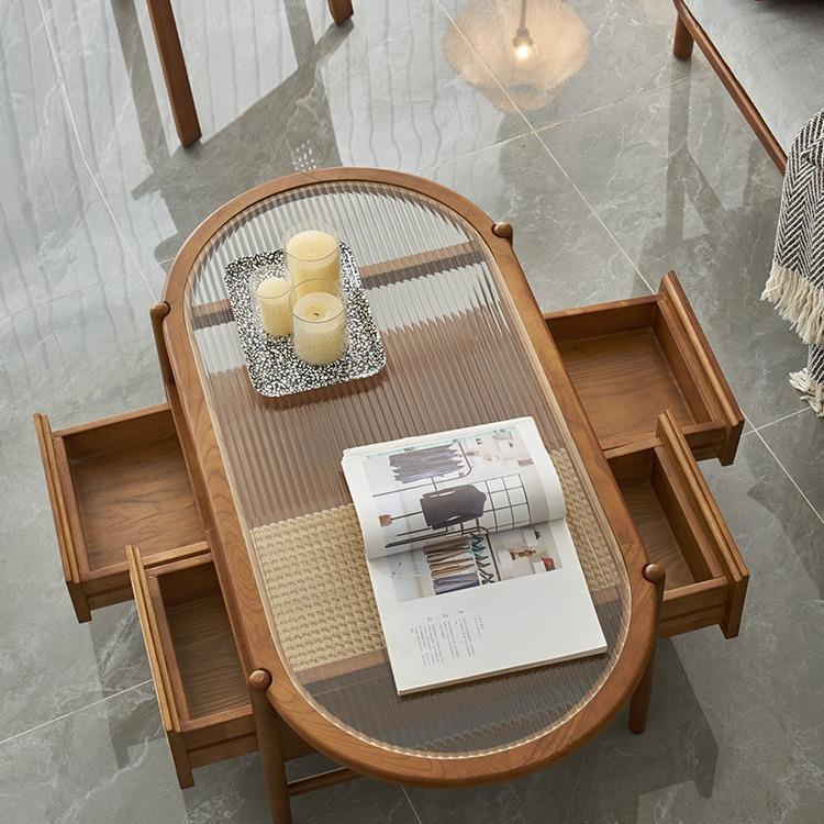 诧寂风木藤编茶几知圆实户型客厅家樱桃木色小白蜡木椭HLW22-0