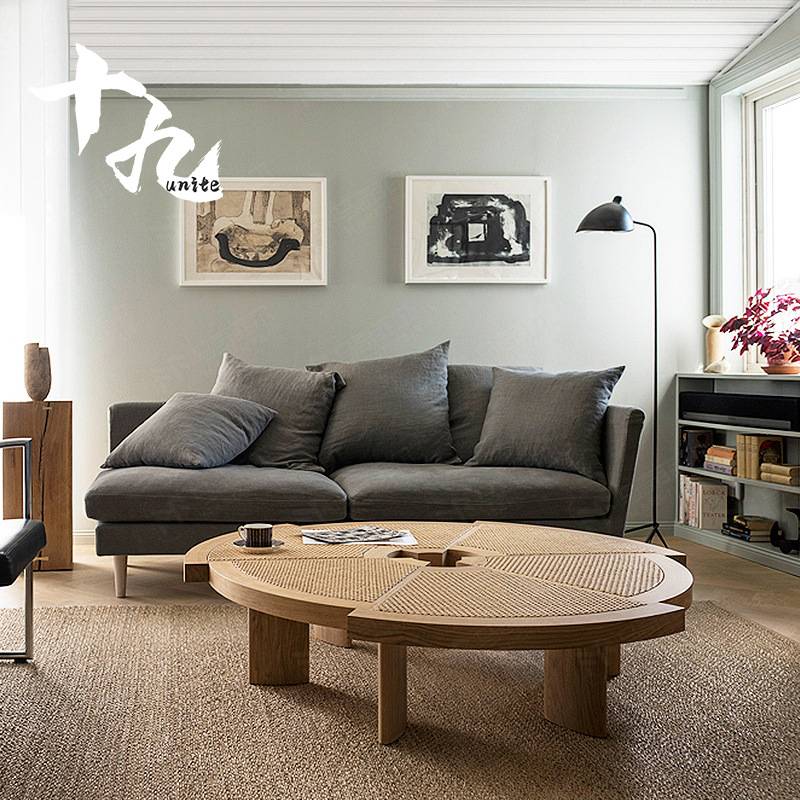 北欧藤编茶几现代简约圆茶几轻奢极简圆形茶几实木民宿侘寂风家具