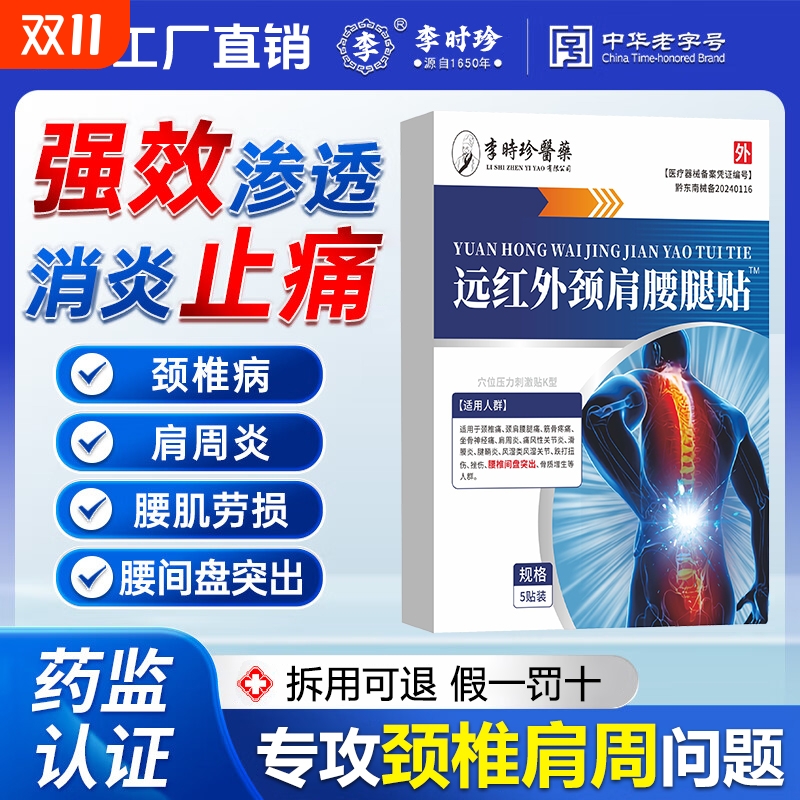 李时珍医药远红外理疗贴正品调理颈椎病肩颈酸麻肌肉劳损膏药贴