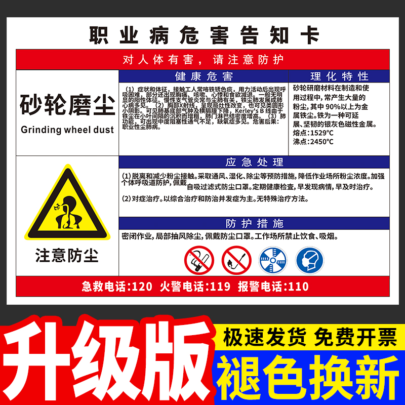 职业卫生公告栏健康安全告知卡工厂加油站警示牌消防知识标语展板挂图