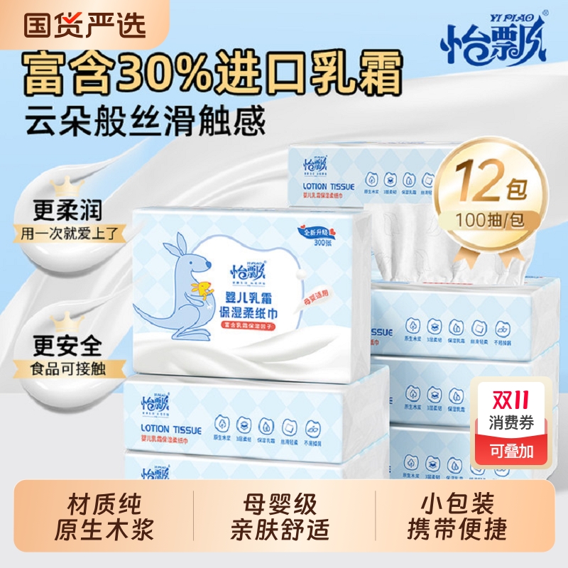 怡飘乳霜保湿柔纸巾婴幼儿专用