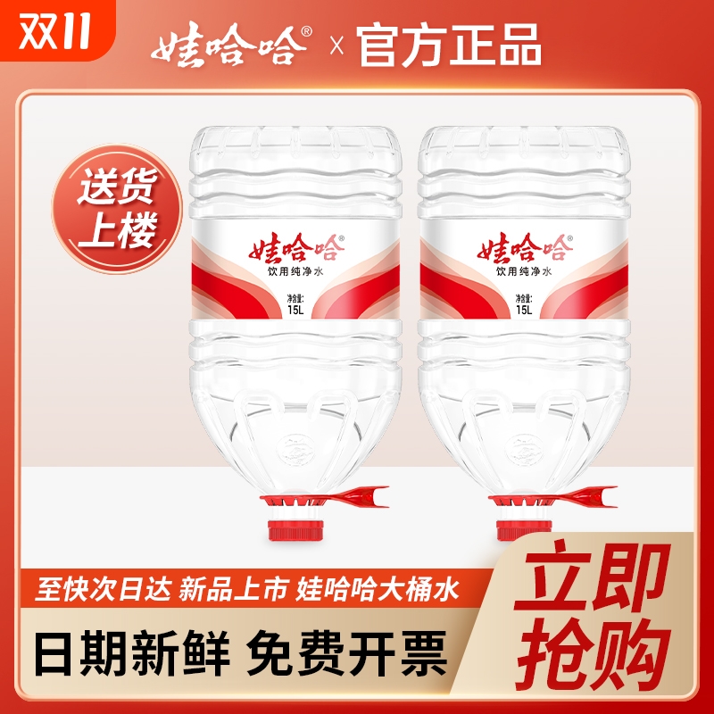 娃哈哈大桶水15L*2桶新品 家庭大瓶桶装泡茶饮用水非14.8升