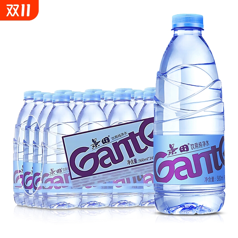 景田饮用纯净水560ml*24瓶整箱瓶装水装非矿泉水家庭用水小瓶