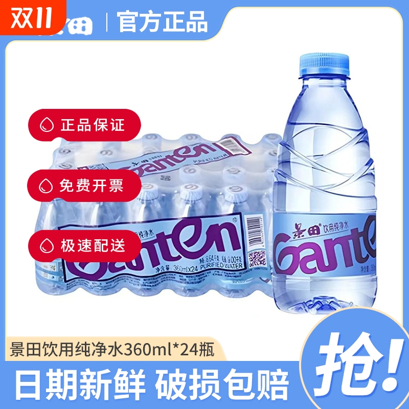 景田纯净水饮用360ml*24瓶塑包用水家庭健康饮用水小瓶装包邮