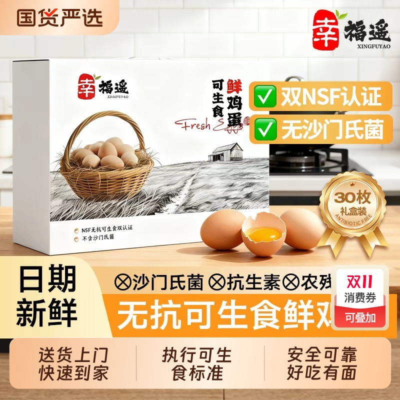 幸福遥可生食NSF双认证谷物喂养鲜鸡蛋做饭首选蛋【京东快递】