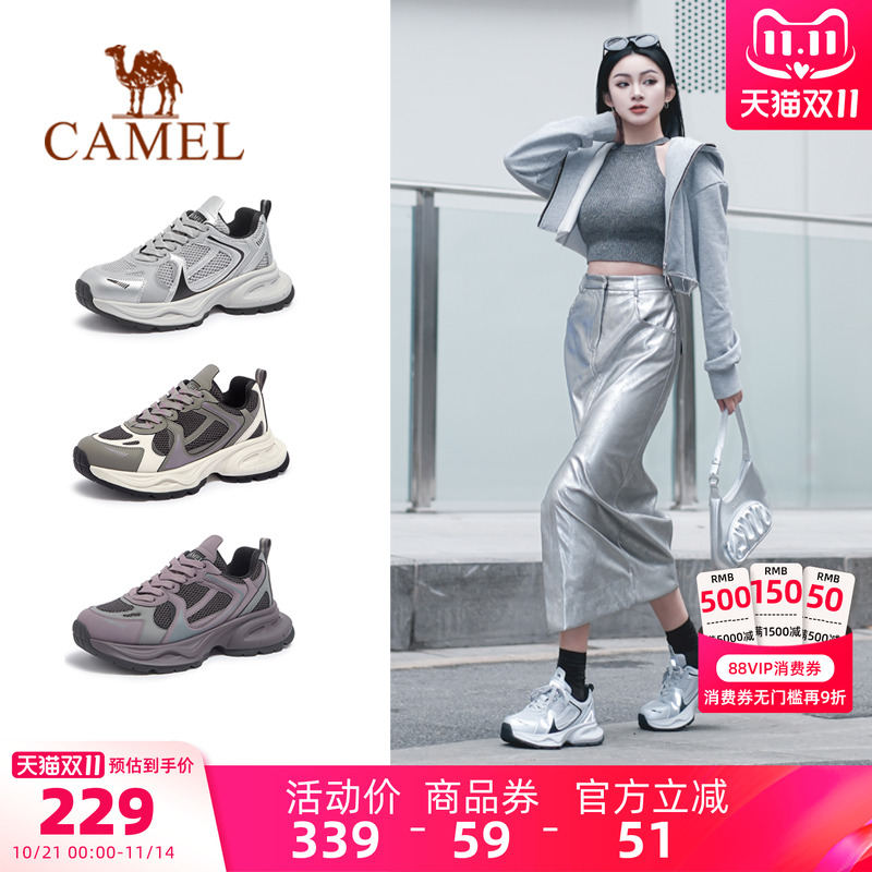 骆驼山河运动鞋男款2025新款透气银色厚底增高复古休闲子鞋老爹鞋