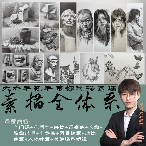 「大乔素描 全体系」从小白几何体到高阶素描,速写,美院课