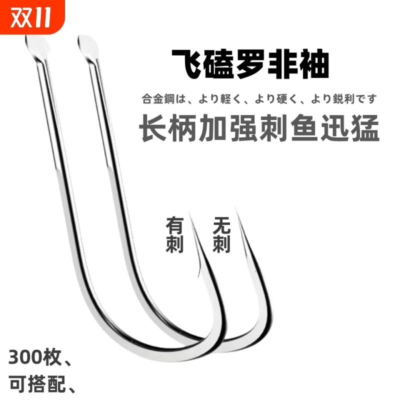 飞磕罗非袖长柄加强无刺黑坑鲫鱼钩鲤鱼钩野钓有刺罗飞磕袖竞技袖