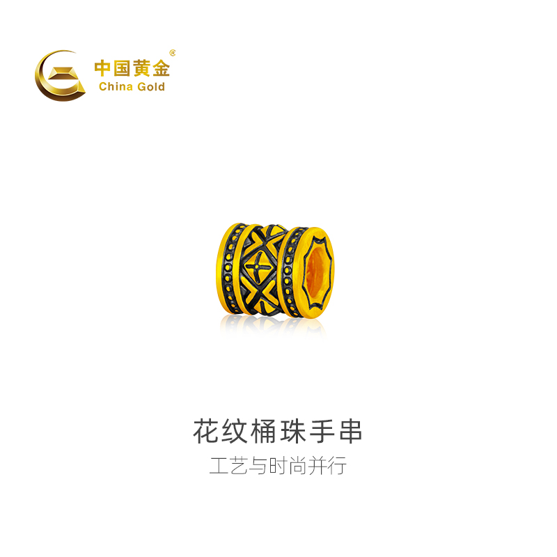【中国黄金官方店】足金花纹桶珠手串百搭手串龙年新品不含配链