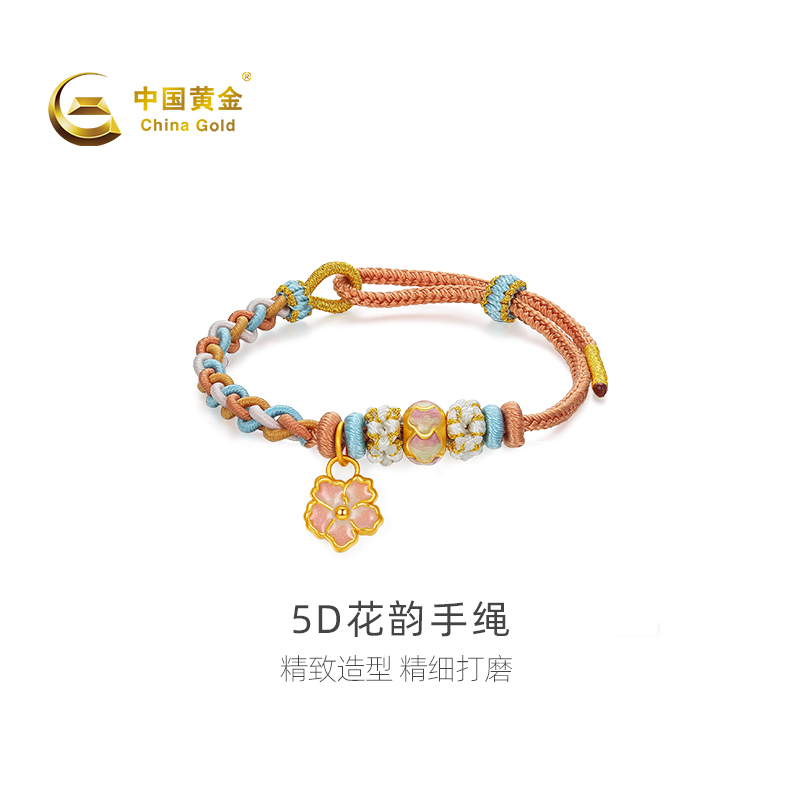 【中国黄金官方店】微硬金财运亨通-福气满满手绳新品首饰送女友