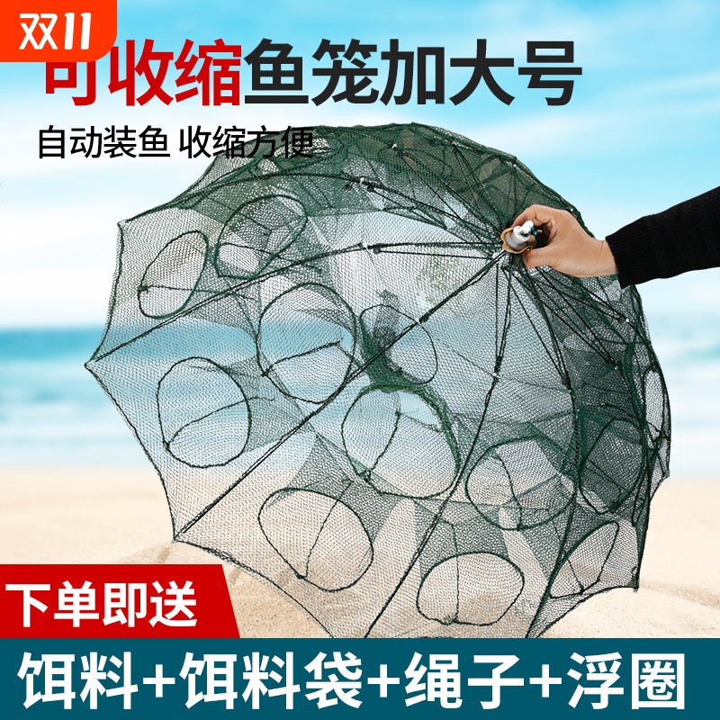 虾笼地网鱼笼加厚捕鱼笼龙虾黄鳝伞型渔网捕虾网神器可折叠笼子