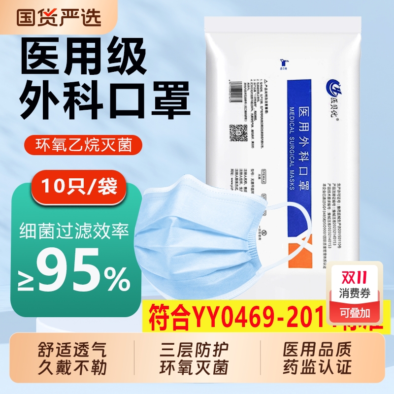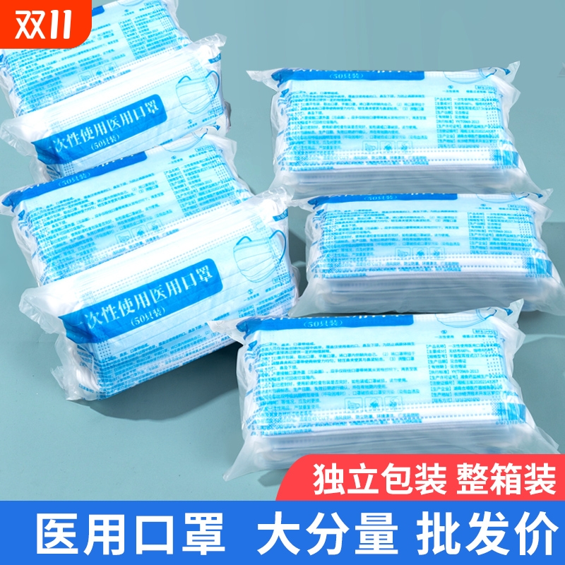 医用外科口罩一次性医疗三层蓝白色正品官方成人单独立包装灭菌级