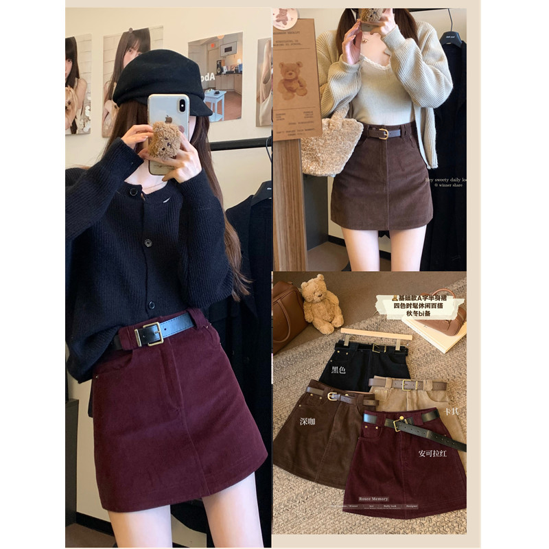 灯芯绒中裙A字包臀裙咖啡色半裙