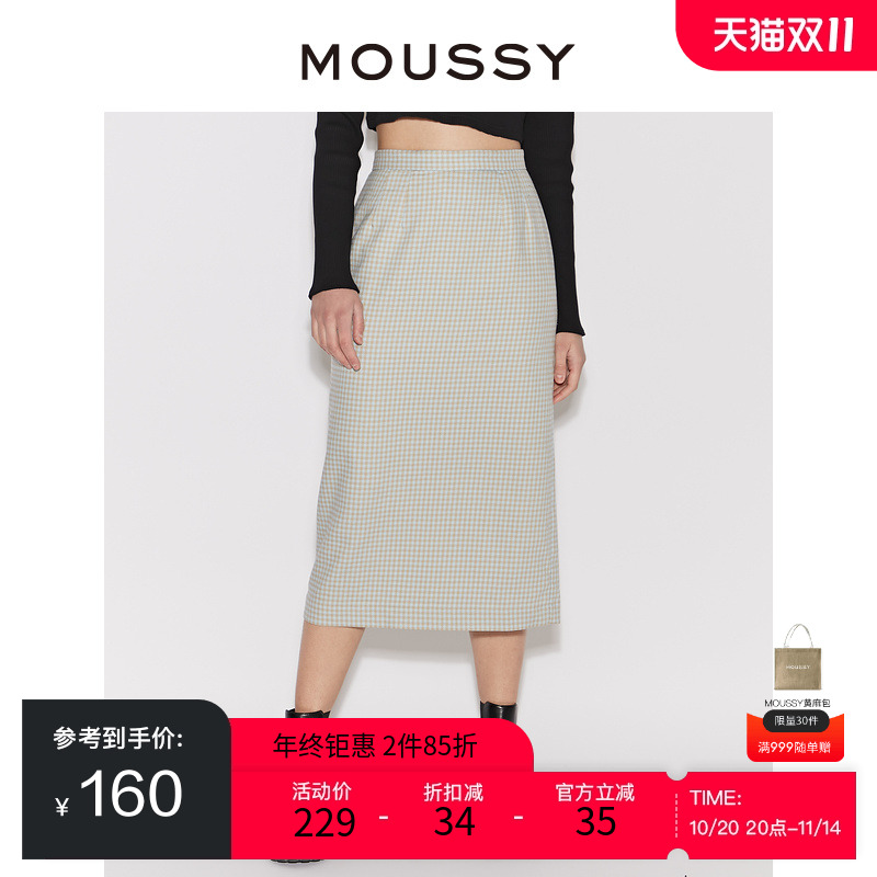 MOUSSY 冬季新品文艺格纹淑女风一步裙半身裙女C28GA73