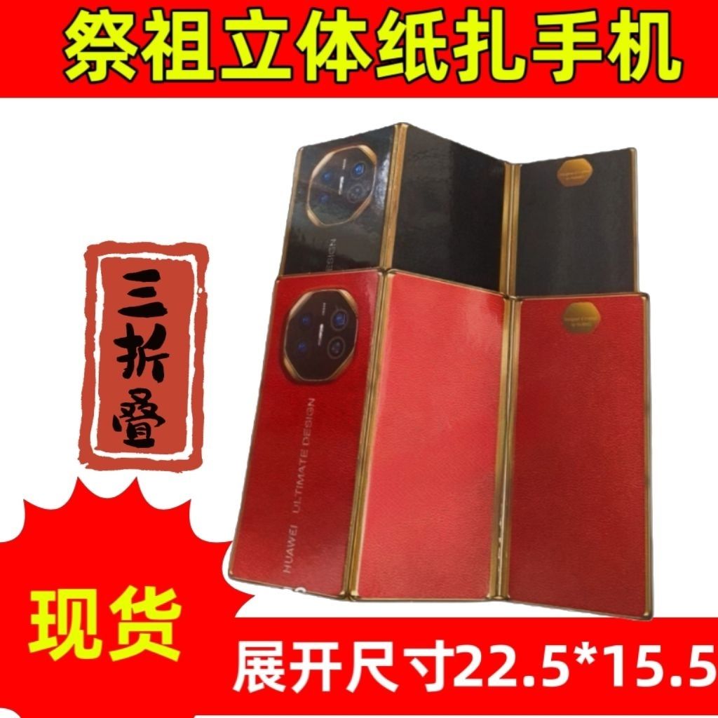 纸扎华为三折叠立体手机祭祀烧纸清明五七忌日上坟周年百天祭祖