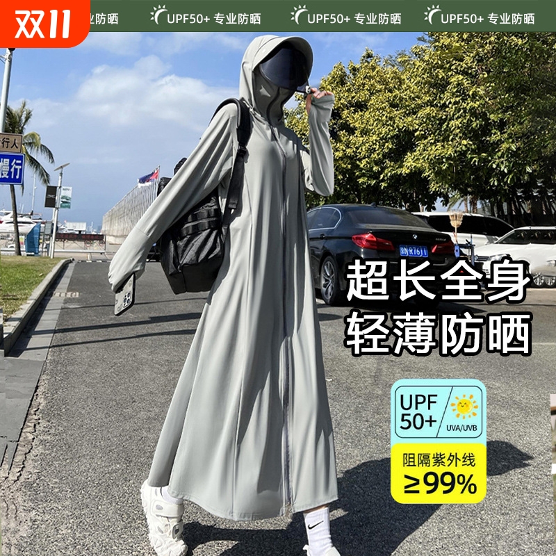防紫外线冰丝防晒衣女2025新款骑车长款宽松全身焦下焦女士防晒服
