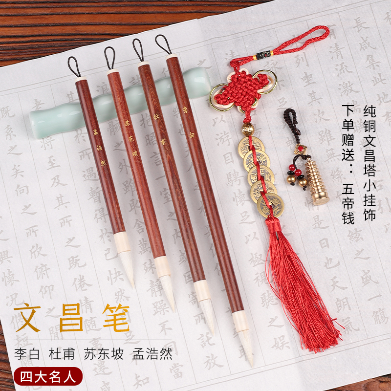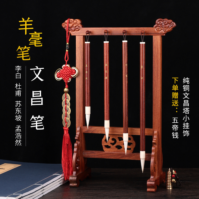 速发文昌笔4支+笔架红檀木文昌羊D毫毛笔四支大小不同长短不一毛