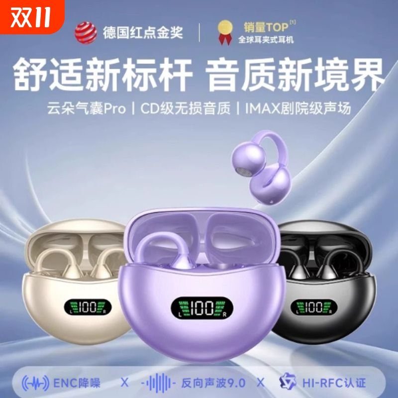 ZOOB/佐伴紫苏蓝牙耳机夹耳式不入耳高音质降噪运动跑步超长续航