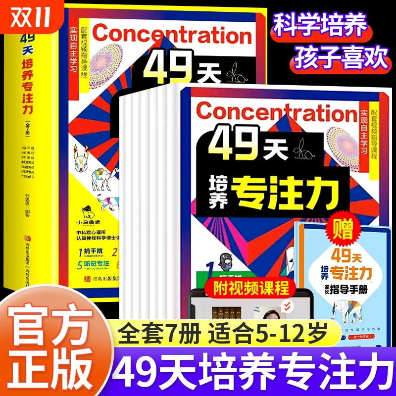赠送指导手册视频课程49天培养专注力全套7册儿童注意力思维训练书