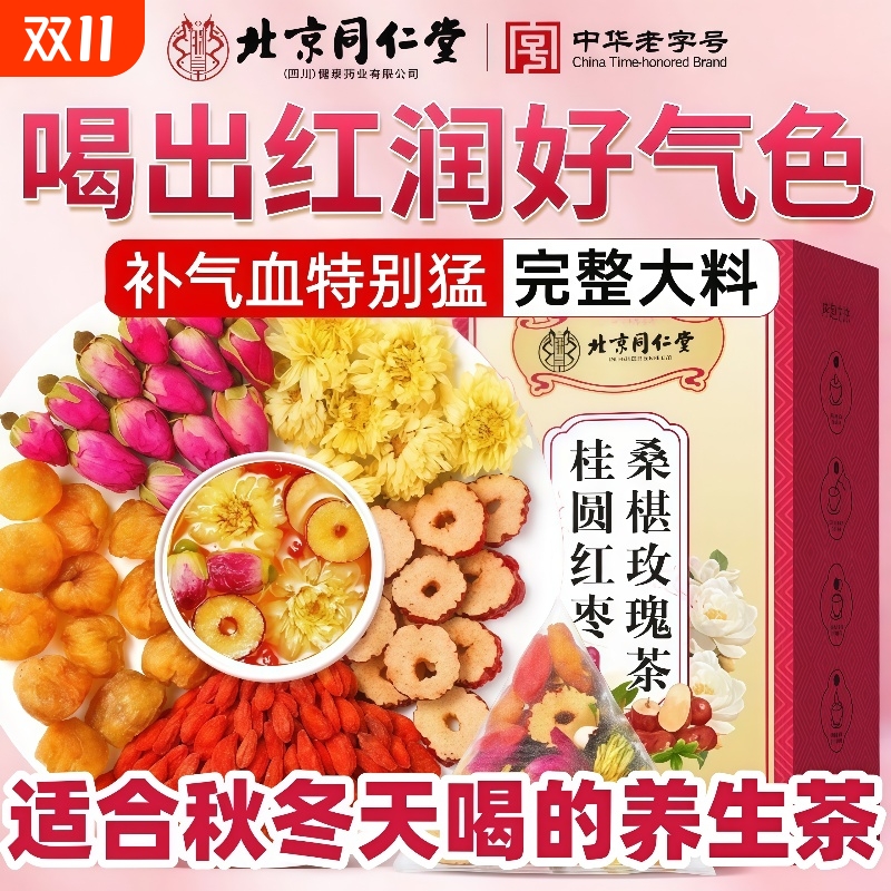 北京同仁堂女生补气养血调理气血不足红枣桂圆枸杞玫瑰桑葚养生茶