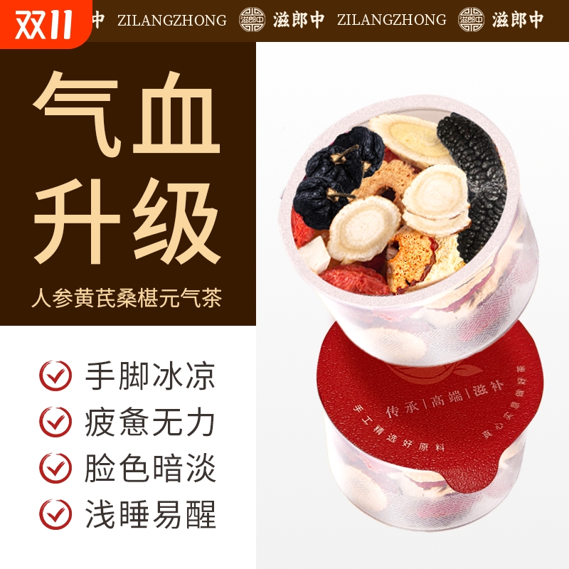 人参黄芪桑椹元气茶枸杞红枣女生补气养血非调理气血不足养生茶饮