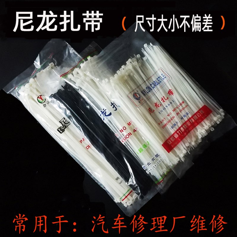 尼龙捆绑带活口自锁式黑白色绑带用于汽车和线材固定W袋口束线扎