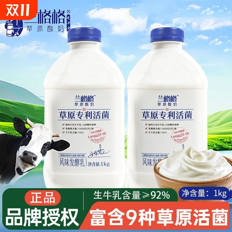 兰格格蒙古专利酸牛奶新鲜发酵1KG桶装家庭儿童营养无添加防雾剂
