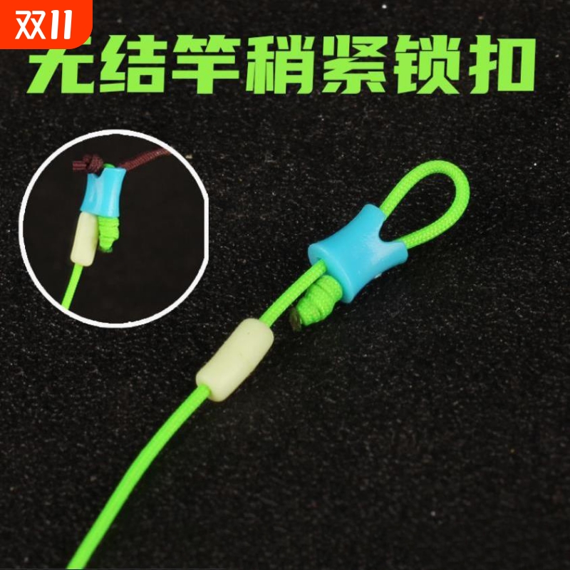 专利无结竿稍自锁扣轻量竿稍绳pe线加固竿稍绳双孔塑料扣垂钓配件