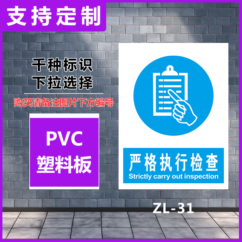 严格执行检查标识牌PVC提示牌反光标志牌铝警示牌贴纸丝印搪瓷牌