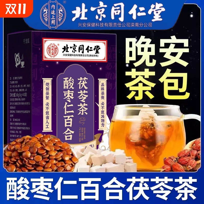 北京同仁堂酸枣仁百合茯苓茶睡眠茶包严重难眠质量差多梦易醒正品