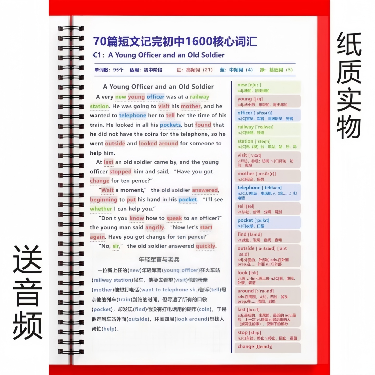 新款70篇短文记完1600个初中英语必背核心词汇背单词彩色带音频
