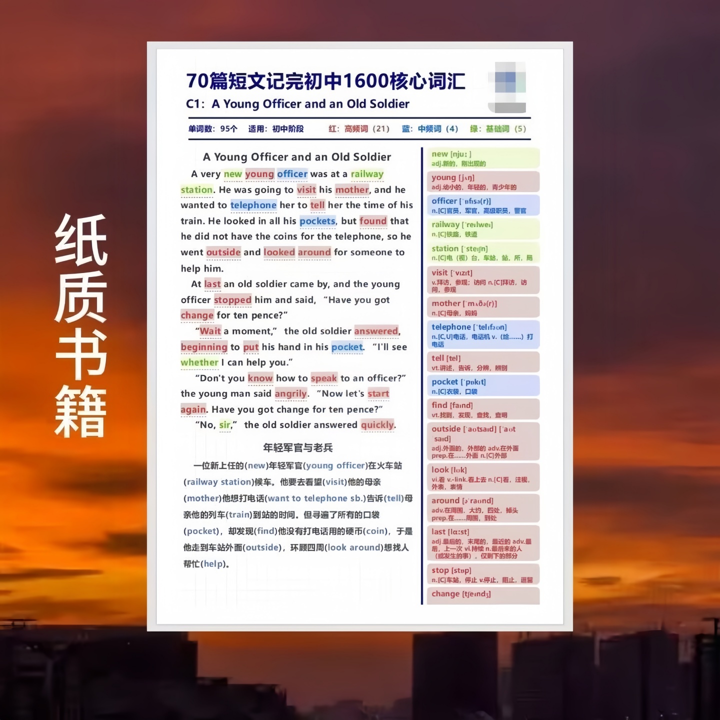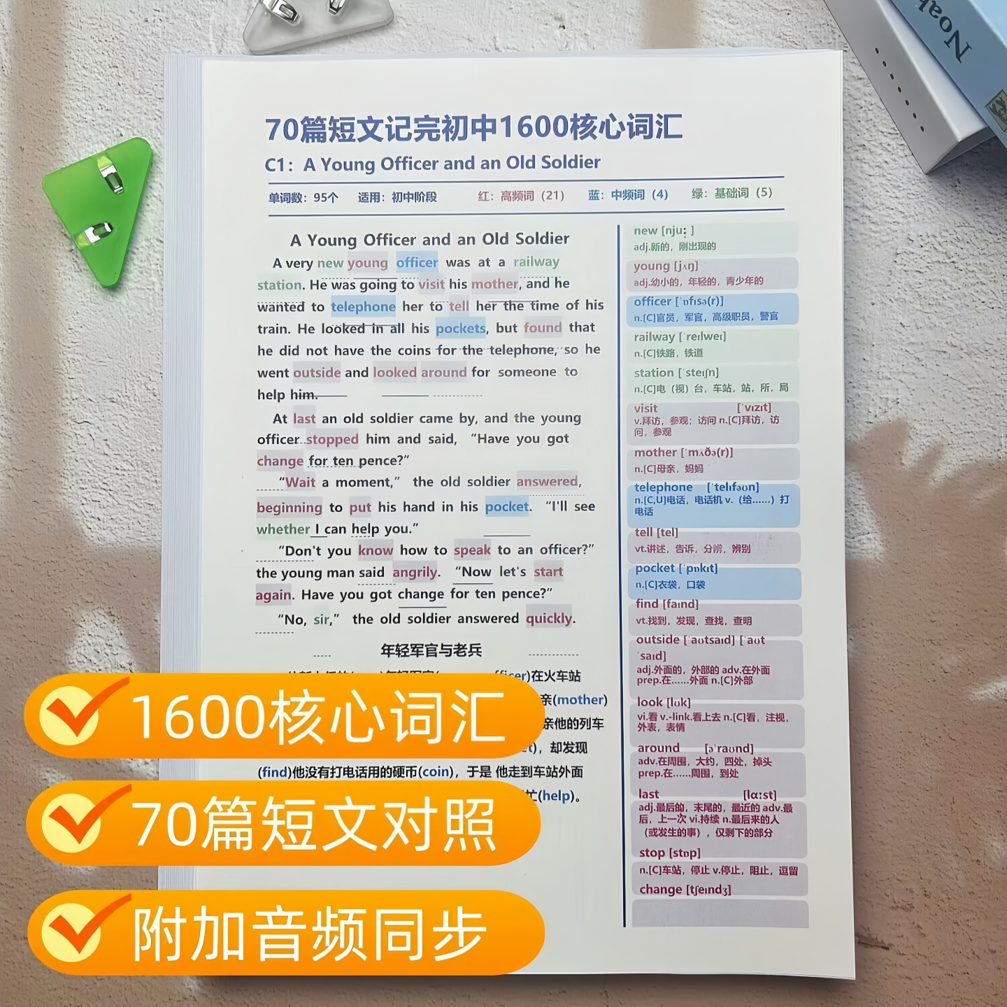 打印版70篇短文记完1600个初中英语核心词汇背单词轻松记忆配音