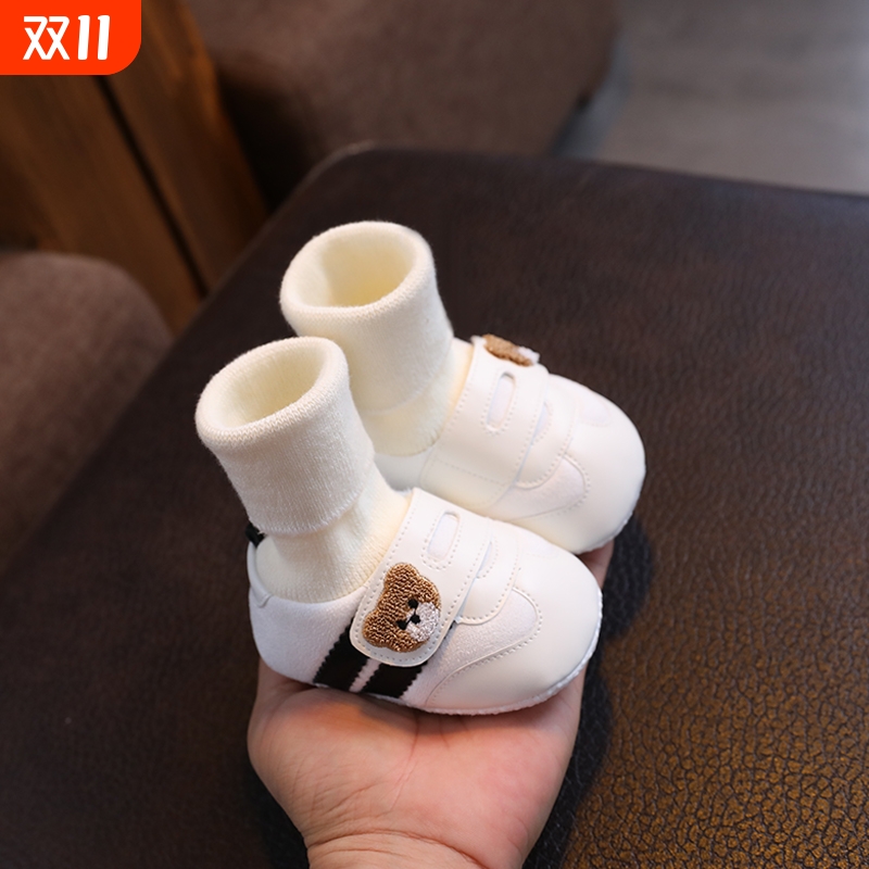 春秋冬季婴儿步前鞋0-1岁3-6-9个月男女宝宝软底新生不掉鞋袜