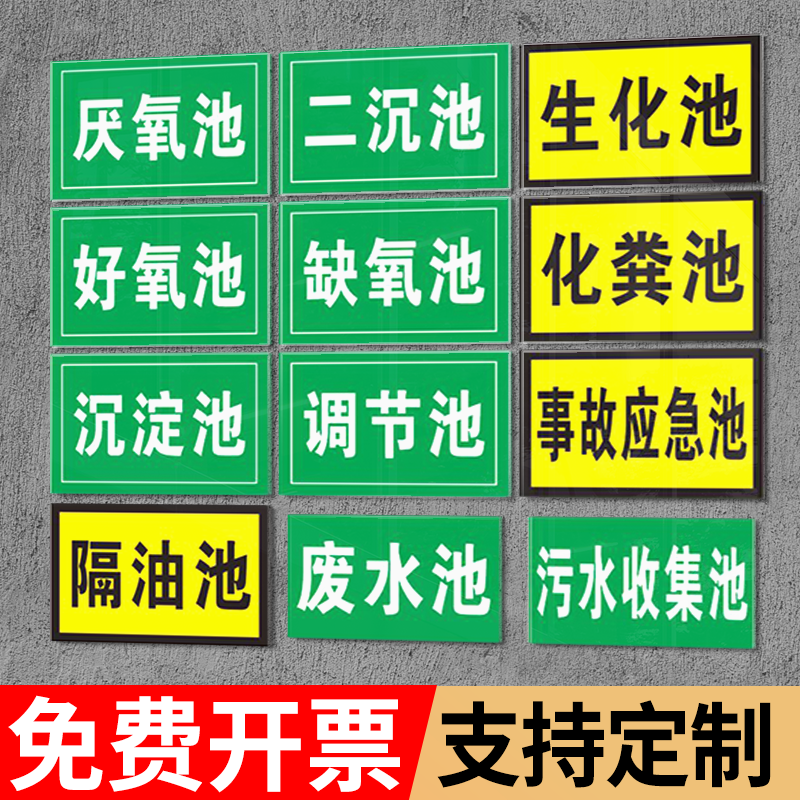 厌氧池提示牌铝板缺氧池消防水池污水废水雨水排放口绿色环保标志牌隔