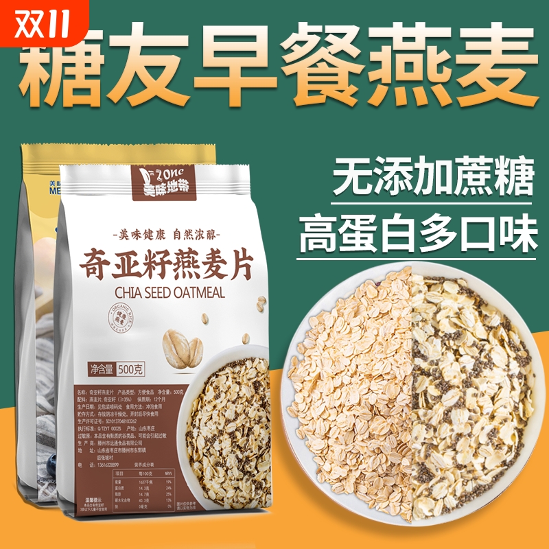 燕麦片早餐即食冲饮无糖精食品糖尿人专用中老年老人控主食糖麦片
