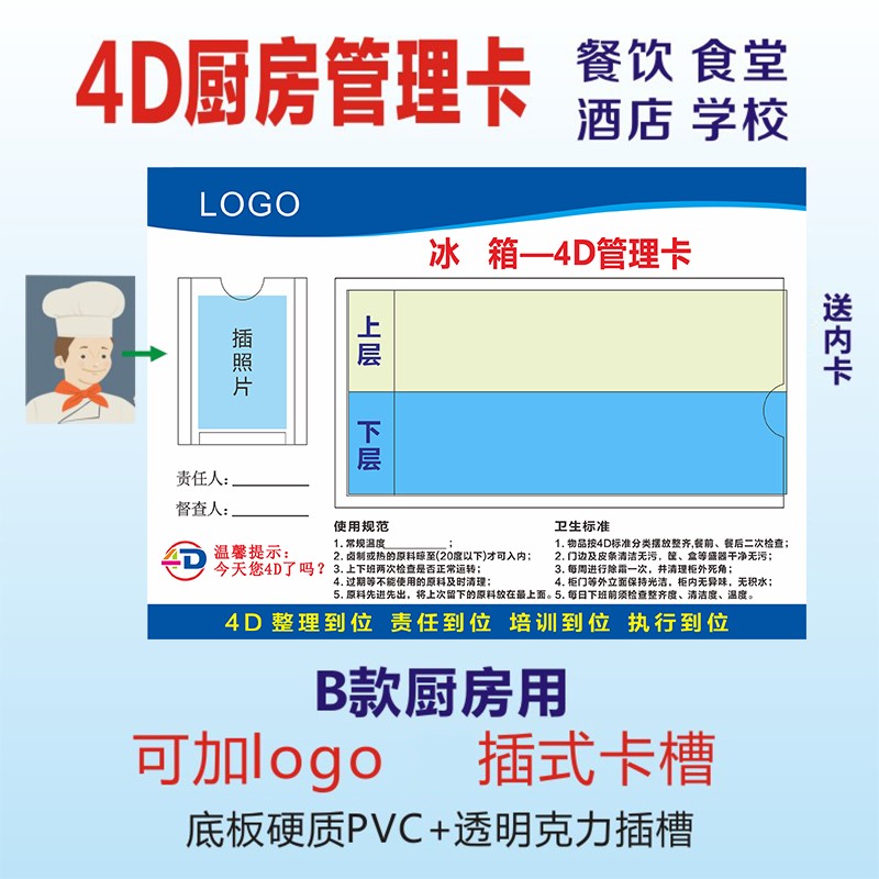4d厨房冰箱管理卡亚克力责任标识牌电炸炉6S学校食堂全套中成伟业