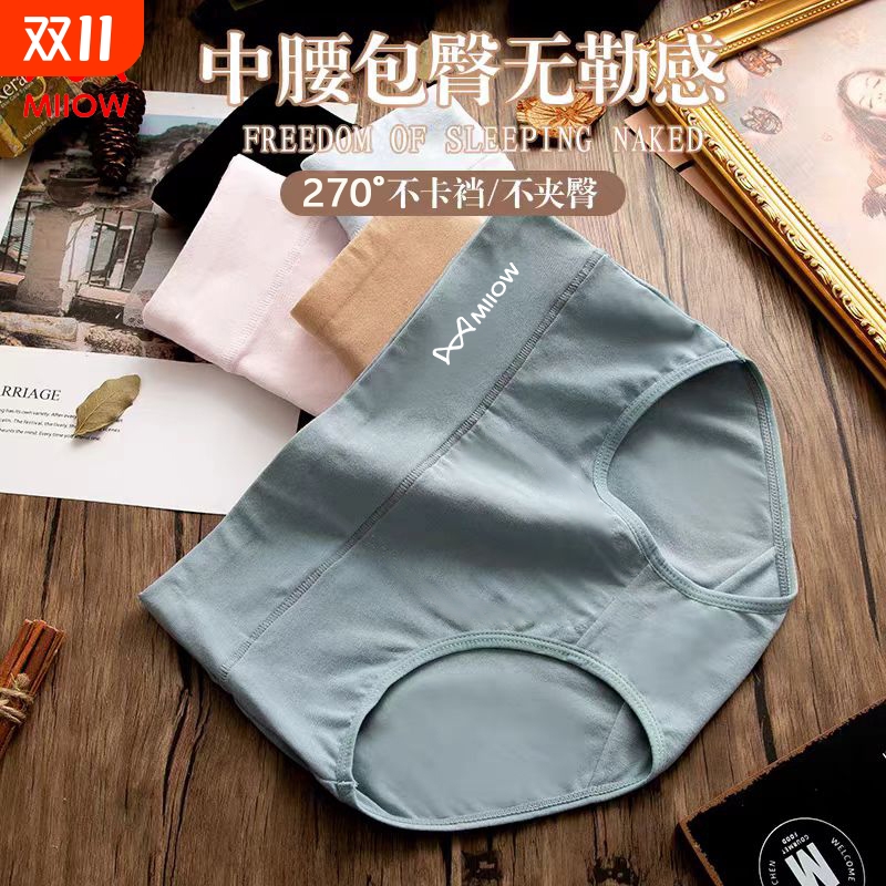 猫人女士棉内裤纯棉抑菌內裆透气精梳棉舒适柔软面料中腰抗菌收腹