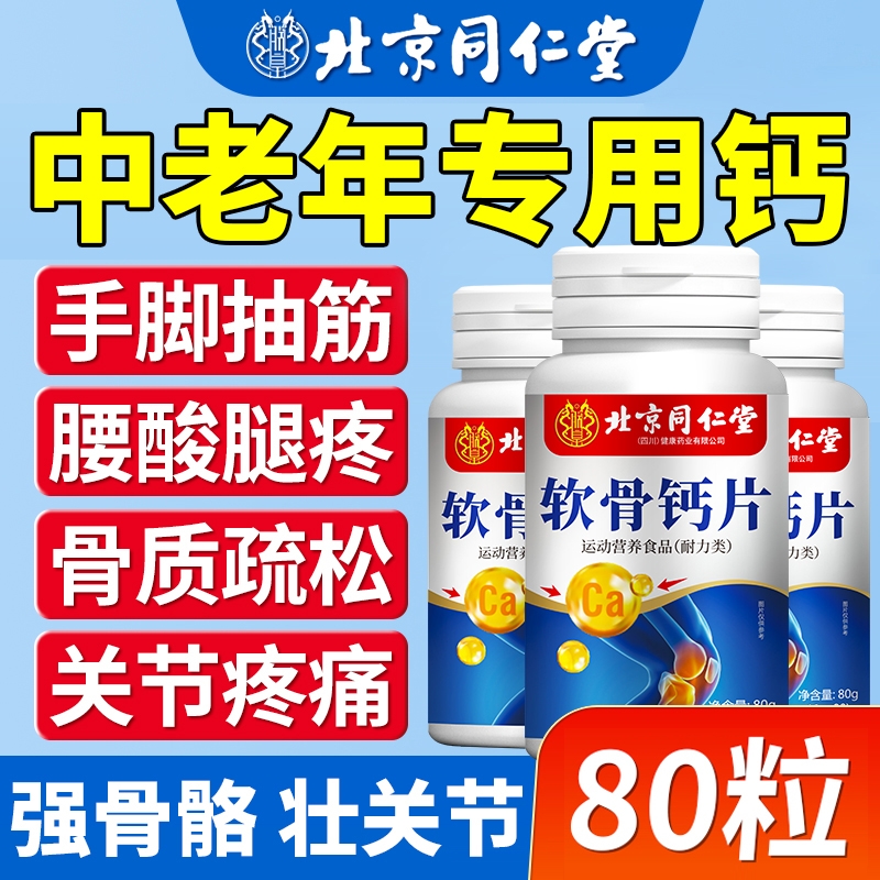北京同仁堂软骨钙片中老年人缺钙腿脚抽筋补钙安糖护关节官方正品