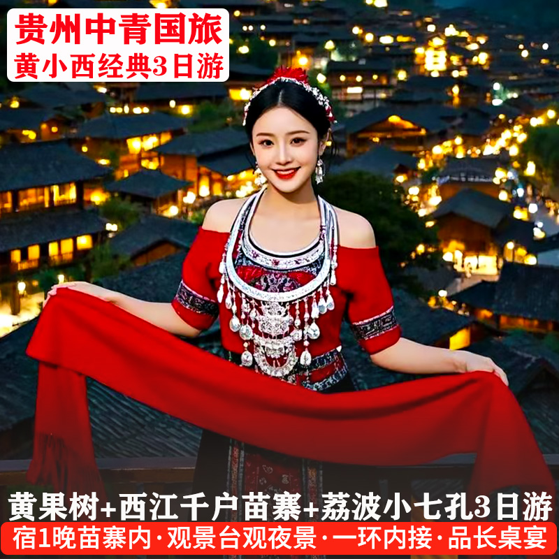 贵州黄果树瀑布荔波小七孔西江千户苗寨旅游2天1晚跟团纯玩二日游