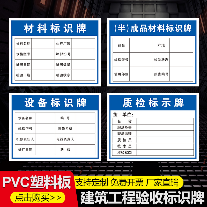脚手架验收合格证标识牌(半)成品材料机械设备配合比临边验收洞口验