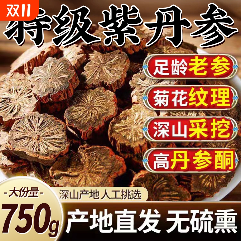 丹参中药材紫丹参片泡茶泡水丹参粉非野生新货特级正品官方旗舰店