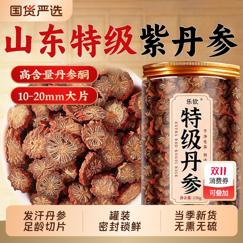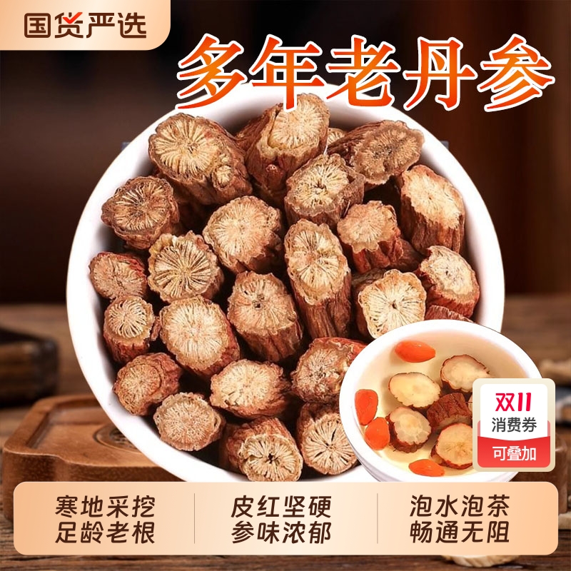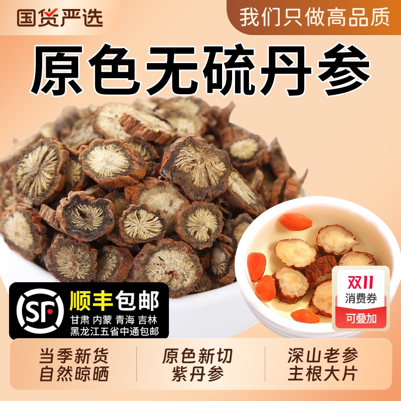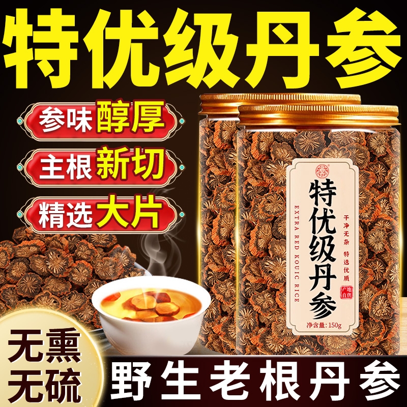 老丹参中药材正品官方旗舰店特级紫丹参片泡水喝丹叁茶粉黄芪山楂