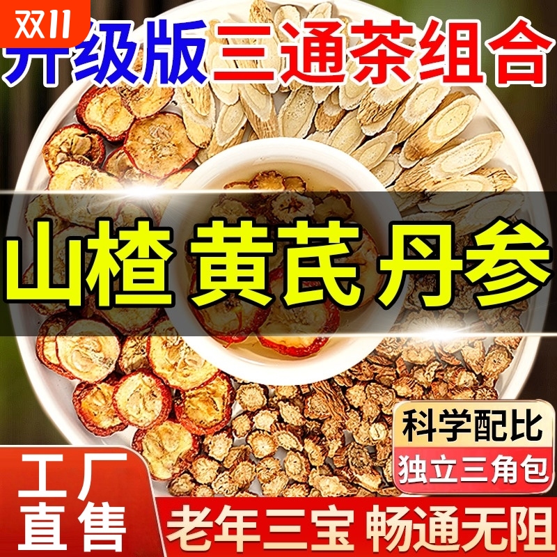 三通茶山楂丹参黄芪正品中药材三焦泡水喝独立包装茶包官方旗舰店