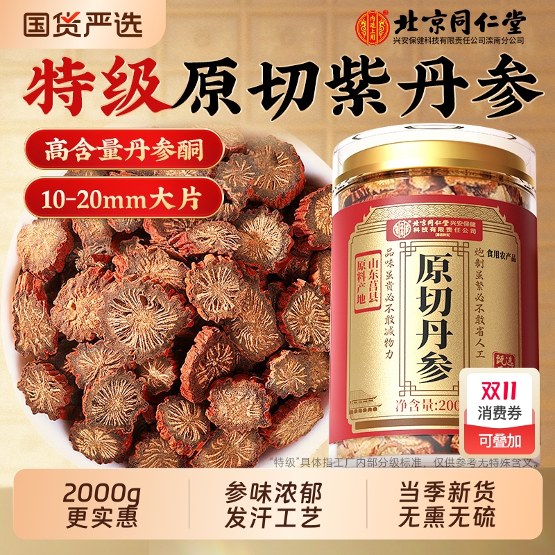 北京同仁堂丹参中药材正品官方旗舰店搭配党参片当归黄芪泡水喝7