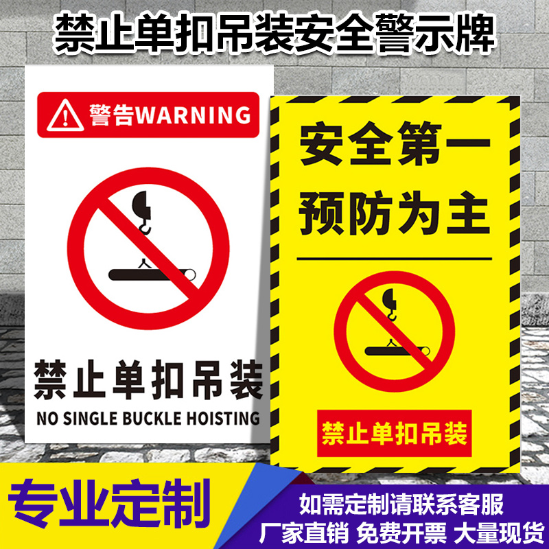 禁止单扣吊装安全警示牌警告安全第一预防为主标识牌重要提示非本设备